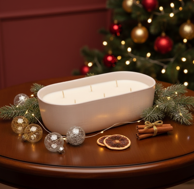 Elevate your candle collection with this striking vessel, crafted to make a lasting impression. Its unique oblong shape and elegant ribbed texture create a luxurious, eye-catching centerpiece.